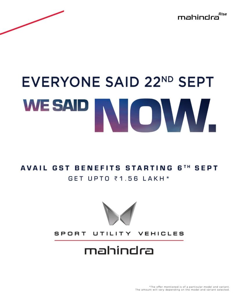 Mumbai, September 6, 2025 – Mahindra & Mahindra Ltd., India’s largest SUV maker, has announced price reductions across its ICE SUV portfolio, effective September 6, 2025. The company confirmed it will pass on the entire benefit of the GST 2.0 reforms announced at the 56th GST Council meeting earlier this month.